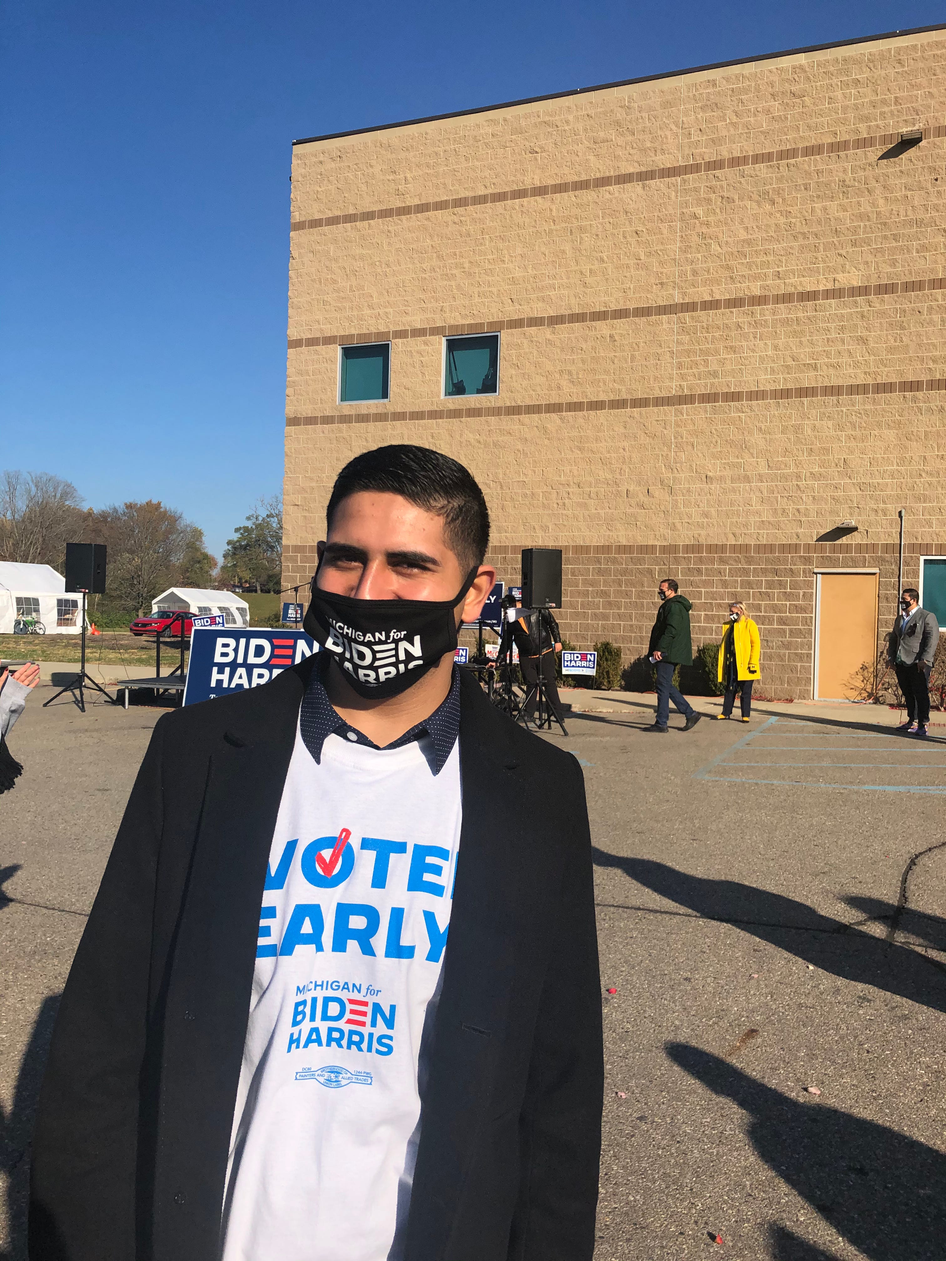Last Saturday in Dearborn, Adam Abusalah helped organize a Biden/Harris rally in the parking lot of the Hype Athletic Center. The list of speakers included Representatives Rashida Tlaib (D-MI) and Debbie Dingell (D-MI), as well as former Michigan gubernatorial candidate Abdul El-Sayed.