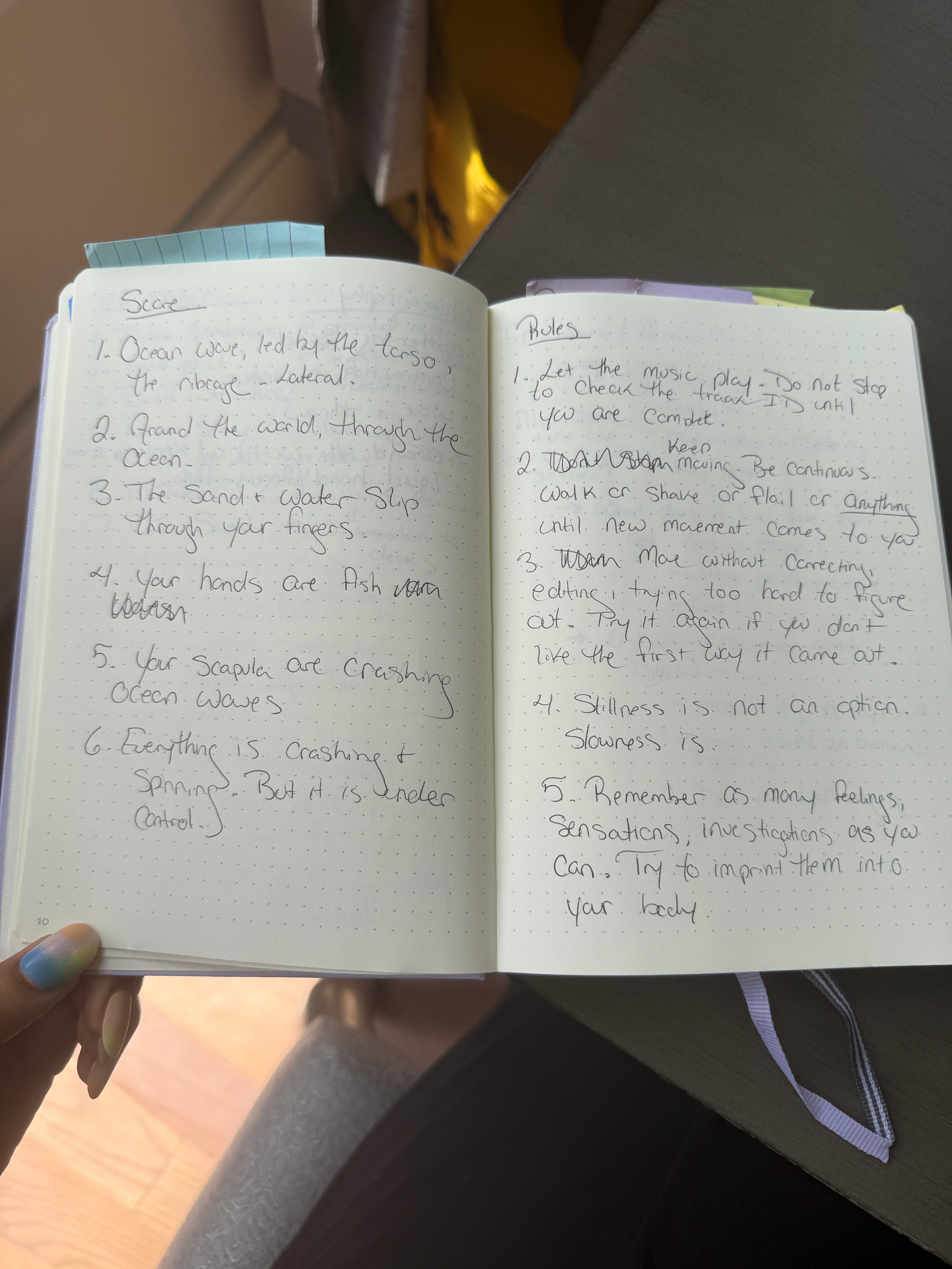 Side note for my creative readers: I started this residency with a brand new notebook and set it up in this method, and it’s been such a good way of keeping my thoughts organized.